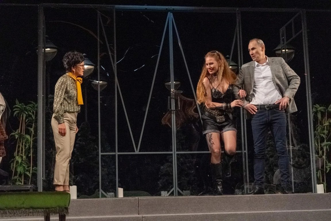 Още от началото на пиесата виждаме нежеланието на Матилд да бъде там където е (почти насила отишла), в къщата на Франки и желанието на съпруга й Иван поне за малко тя да покаже деликатност и да не й личи чак толкова вътрешното й състояние. Завръзката на постановката настъпва с новината, че изкусителната секретарка на Франки – Талия (Стефания Кочева) също ще присъства на семейното събиране, от което трите жени биват видимо провокирани по не толкова приятен начин. Появата на ексцентричната, провокативна и освободена Талия и последвалите завоалирани диалози между нея и тримата мъже, които по една или друга причина са имали близко съприкосновение с Талия, будят много въпросителни у съпругите относно верността на възлюбените им.
