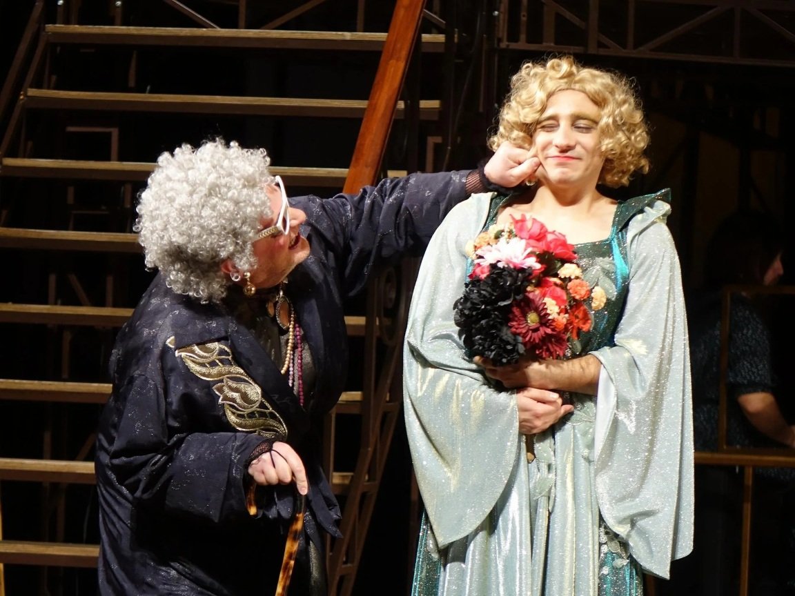Кои са примадоните в най – новата премиерна постановка на Сатиричен театър „Алеко Константинов“? Това са двама актьори Лео (Михаил Сървански) и Джак (Светлозар Начев), които страдат (вътрешно и финансово) от липсата на духовност и почит към културата у хората. Късметът им обаче проработва, когато откриват, че възрастната богаташка Флорънс (Петър Калчев) е умряла без да види изчезналите си две наследнички. Двамата мъже стъкмяват коварен план да се преобразят и представят за тях, за да получат голяма част от наследството й, което ще си поделят с третата млада наследничка Мег (Анита Ангелова). Планът им обаче се обърква. Ситуацията излиза от контрол първо защото „дъртата вещица“, както я нарича нейния доктор (Иван Панев), се оказва, че не е мъртва, и второ – въпреки успешната си и забавна женска дегизировка, двамата герои не успяват да потушат мъжкото в себе си и се влюбват – единия в Мег, а другия – в момиче близко на богатото семейство.